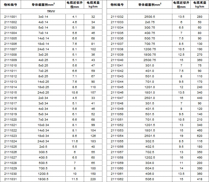 TRVV非屏蔽拖鏈電纜技術(shù)參數(shù)