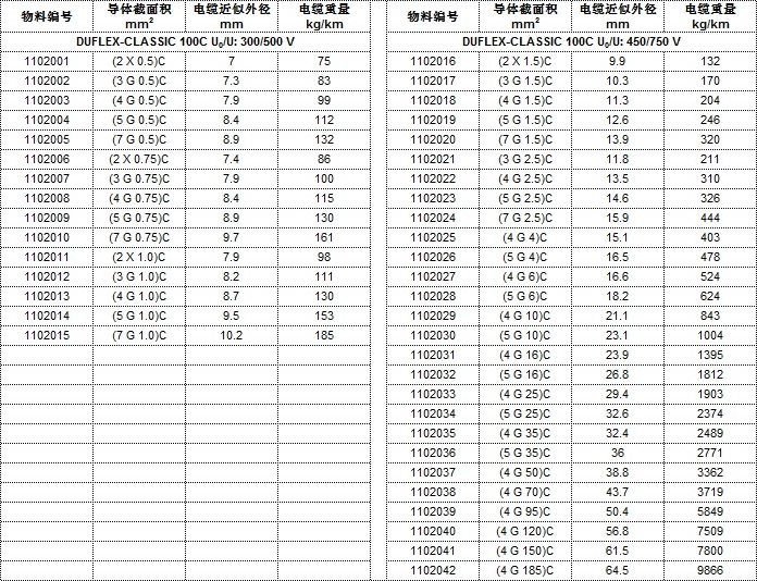DUFLEX-CLASSIC 100C技術(shù)參數(shù)