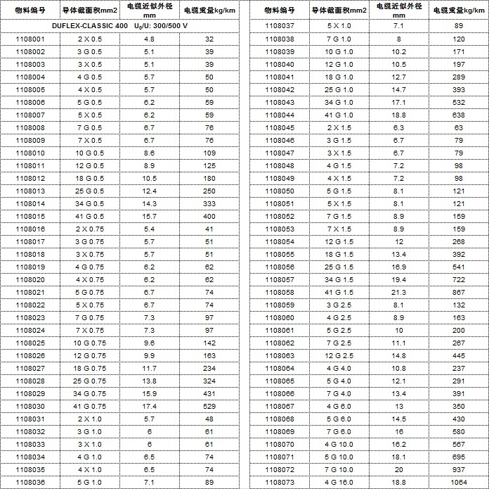 DUFLEX-CLASSIC 400技術(shù)參數(shù)