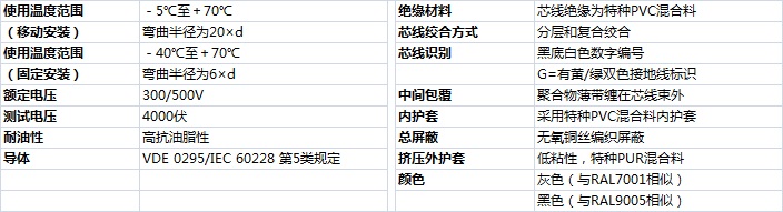 加強型耐油和冷卻液PUR護套數(shù)字芯線屏蔽柔性控制電纜(內(nèi)護型)