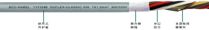 加強(qiáng)型耐油和冷卻液PUR護(hù)套彩色芯線柔性控制電纜