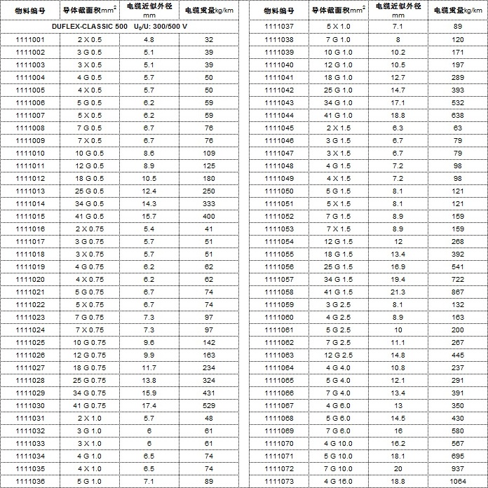 DUFLEX-CLASSIC 500技術(shù)參數(shù)