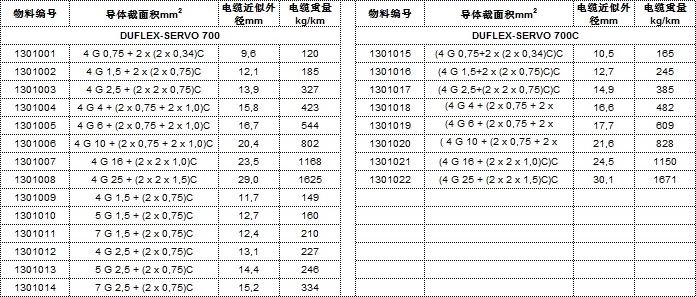 DUFLEX-SERVO 700/700C技術(shù)參數(shù)