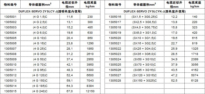 DUFLEX-SERVO 2YSLCY-J技術(shù)參數(shù)