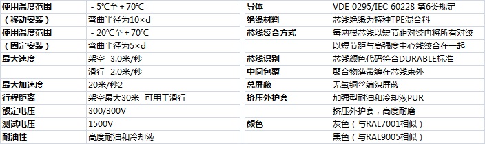 加強(qiáng)型耐油和耐冷卻液PUR護(hù)套對絞屏蔽高柔性數(shù)據(jù)電纜