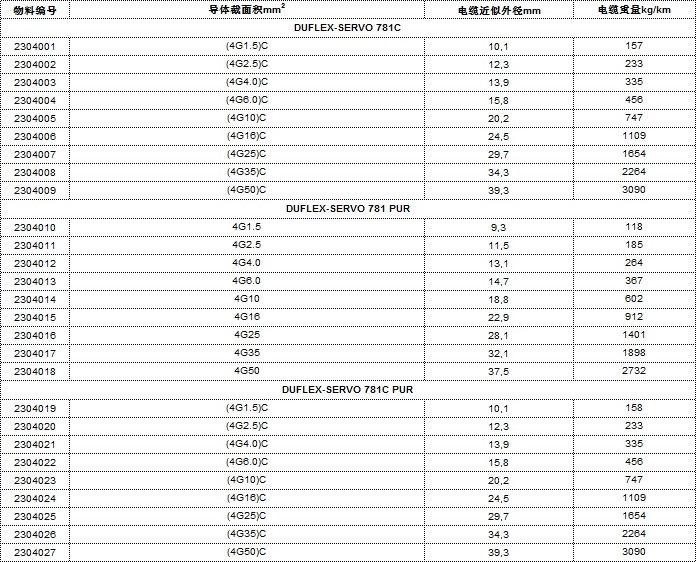 DUFLEX-SERVO 781C/781 PUR/781C PUR技術(shù)參數(shù)