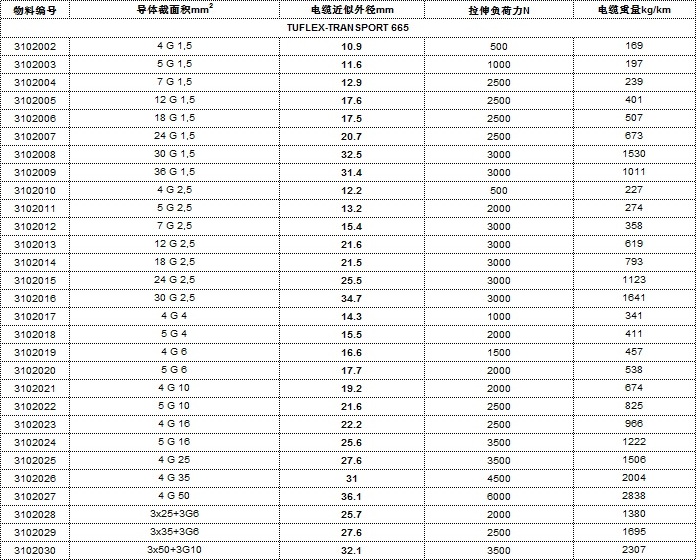 TUFLEX-TRANSPORT 665技術(shù)參數(shù)