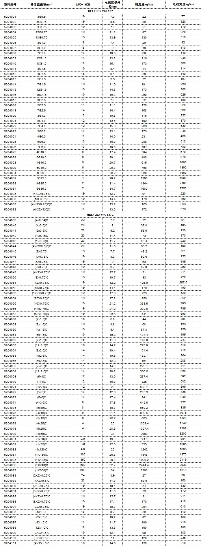 HELFLEX WK 137/137C技術(shù)參數(shù)