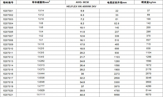HELFLEX WK 400WM技術(shù)參數(shù)