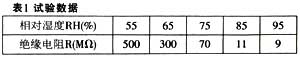(1) 濕度的影響表 1 中的一組試驗(yàn)數(shù)據(jù), 表明濕度對(duì)絕緣電阻測(cè)量的影響。 由表 1 可見,絕緣電阻對(duì)濕度變化是很敏感的。 相對(duì)濕度增加, 絕緣電阻降低。 當(dāng)環(huán)境的相對(duì)濕度大于75 %時(shí), 一般在絕緣材料表面上開始出現(xiàn)微小的水珠或薄薄的水膜。 實(shí)際上, 表面絕緣電