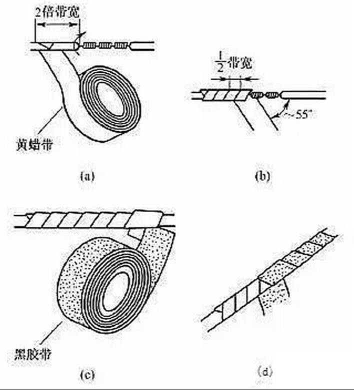 導(dǎo)線連接處的絕緣處理通常采用絕緣膠帶進行纏裹包扎。一般電工常用的絕緣帶有黃蠟帶、滌綸薄膜帶、黑膠布帶、塑料膠帶、橡膠膠帶等。絕緣膠帶的寬度常用20mm的,使用較為方便。