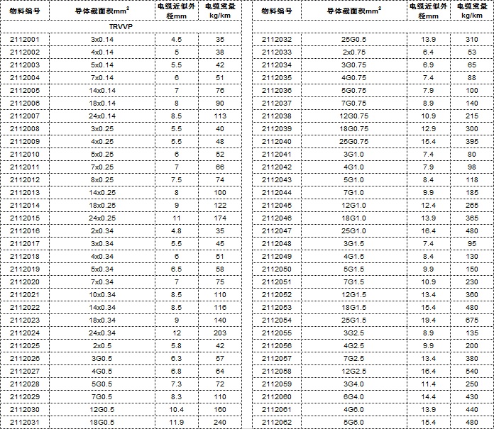 TRVVP屏蔽拖鏈電纜技術(shù)參數(shù)