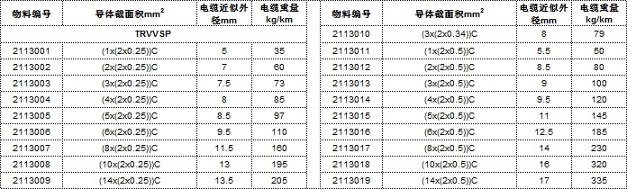 TRVVSP雙絞屏蔽拖鏈電纜技術(shù)參數(shù)