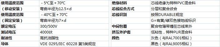 加強(qiáng)型耐油和冷卻液PUR護(hù)套彩色芯線柔性控制電纜